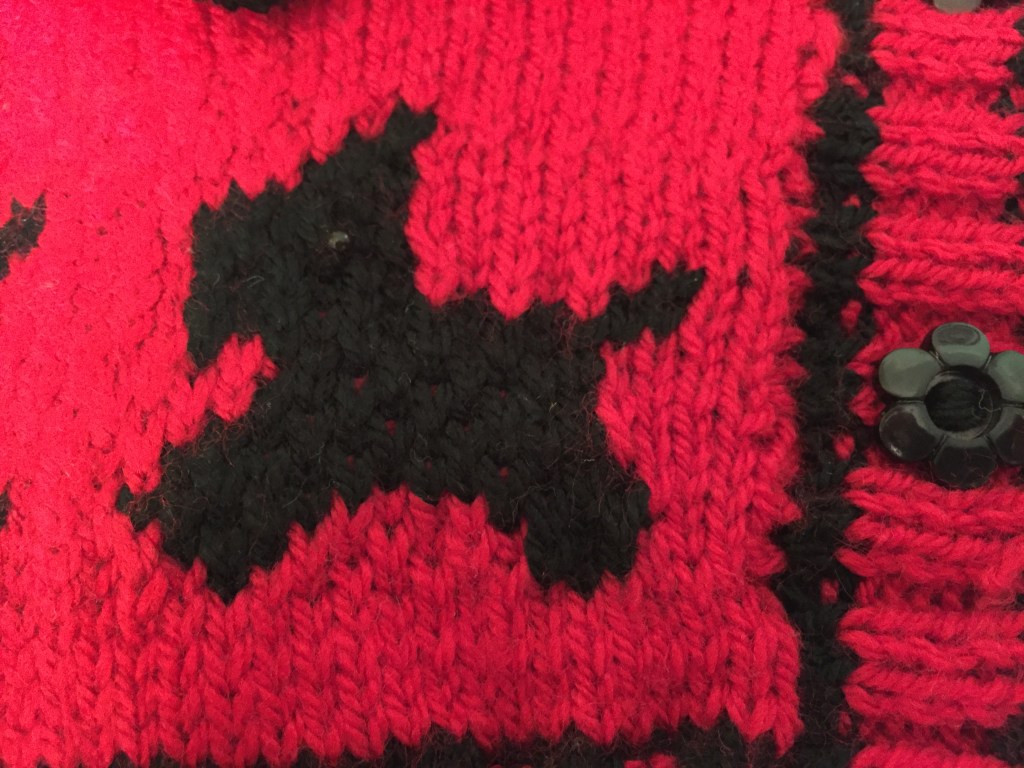 I love it when you find the perfect item to knit for someone. I just have to knit something when anyone I know has a baby, so when my friends had a little girl I found this Sirdar pattern (since discontinued). I simply had to make it as they have a little black terrier.