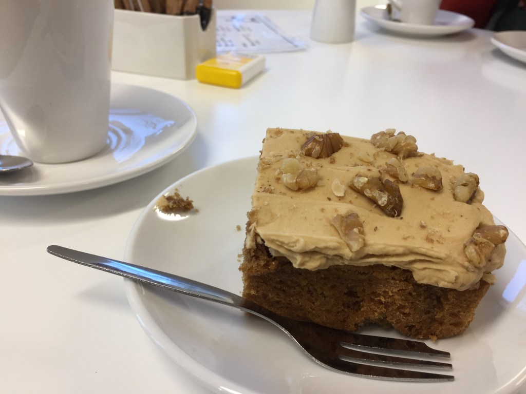 There were no scones where we went today, but the cake looked good so we stayed and had some of that instead.
