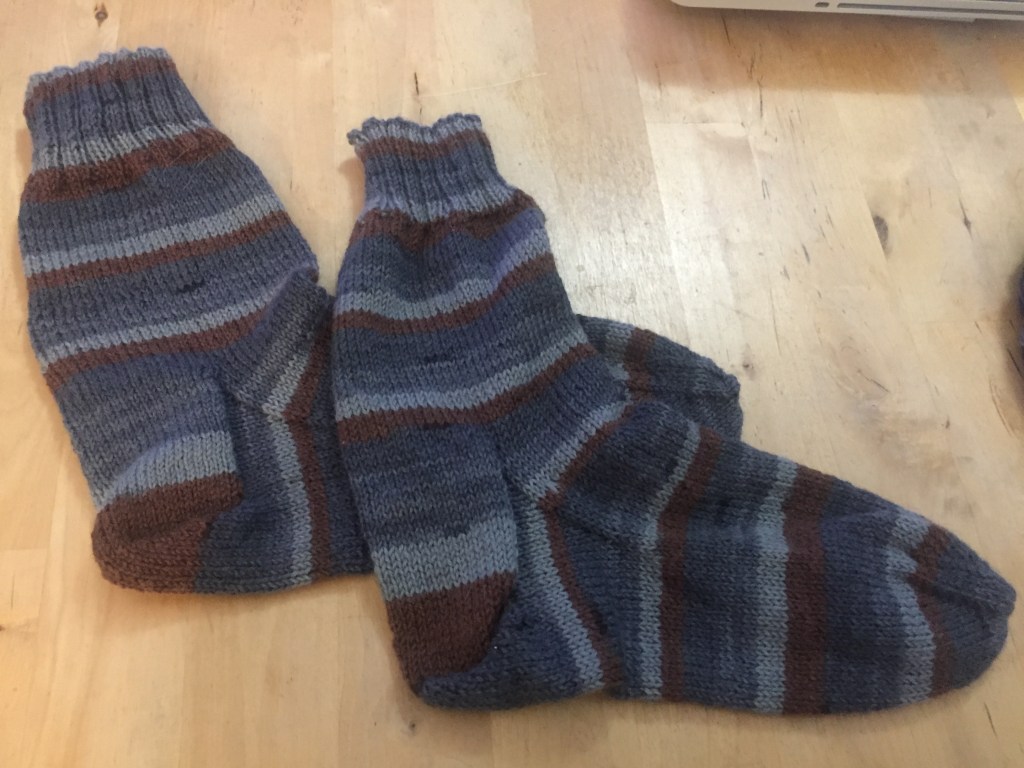 When I was working on a pair of socks at Knit and Natter Group the other Friday, one of my knitting friends told me about an unfinished project that had been sitting in the cupboard under her stairs for about ten years – a pair of socks for her husband.