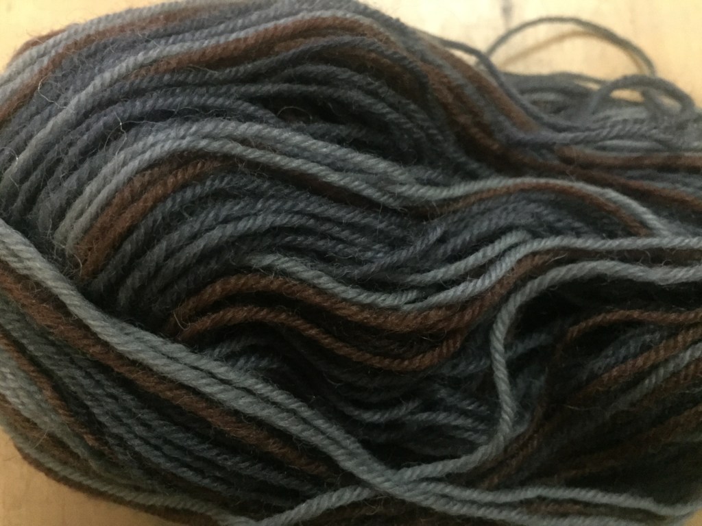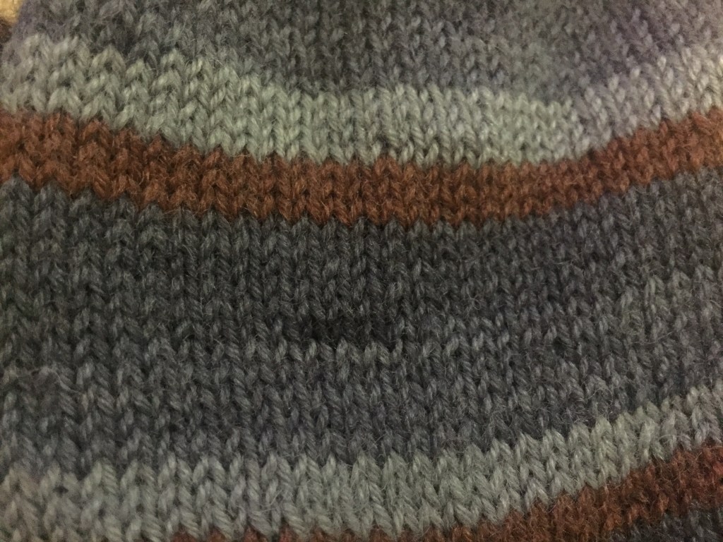 The yarn is a self-striping four ply in subtle shades of blue and brown. The stripes knit up beautifully and evenly – I haven’t used a self striping yarn like this before and loved it – you can really see your progress as you get through the stripes and it made it easier to match up the placement of the heel and toe divides – I didn’t need to count rows, just match the stripes.
