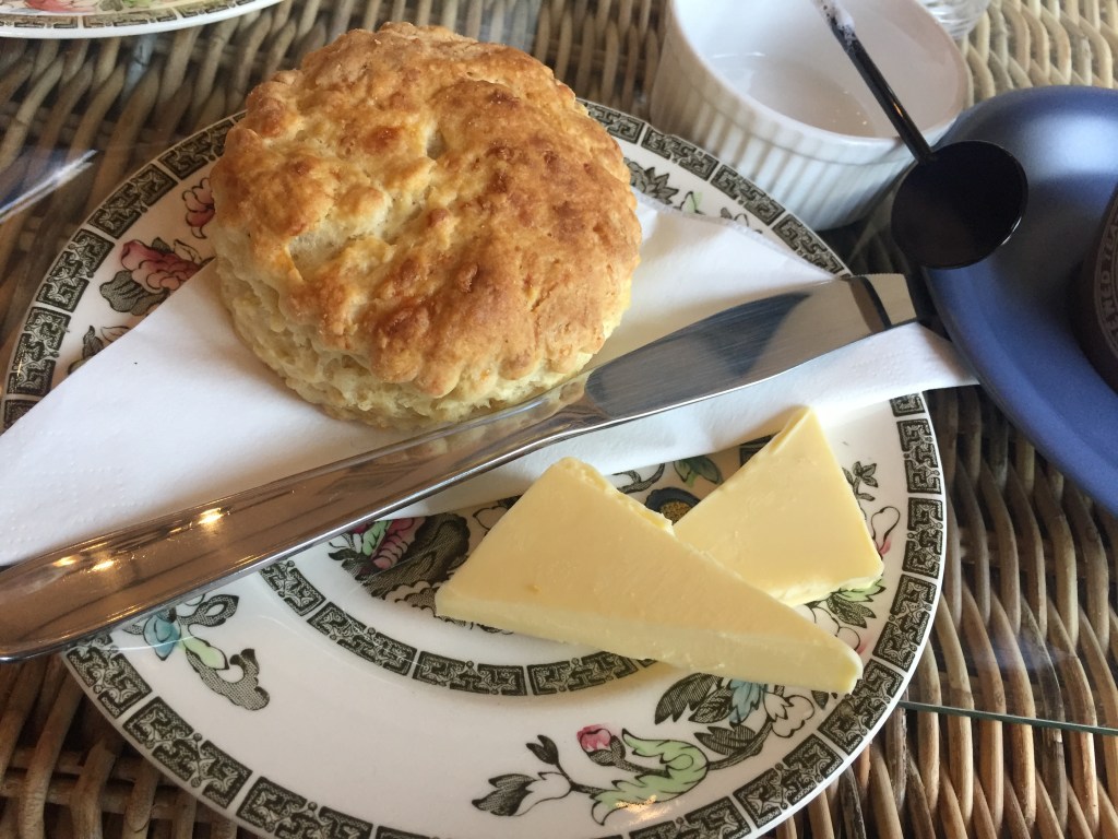 The cheese scones were as delicious as ever, served warm, with generous pats of butter and no foil wrappers to wrestle with. They were crumbly without being dry, with a good flavour and a decent crust. One of the best!