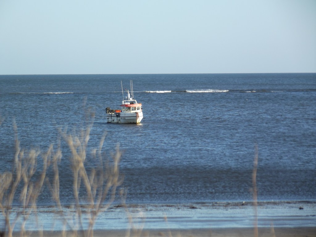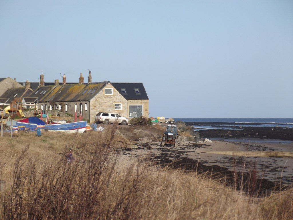 The blue and white boat in this picture is a coble, the traditional fishing boat of the area. The sand here is fine, verging on mud and supports a lot of invertebrates and in turn wading birds. There were lots of oystercatchers, turnstones and curlews among others, feeding at the waters edge, flying up every time someone (or some dog) went past. The birdwatchers seem to congregate at Boulmer as I keep coming across reports of rare birds from here. This evening K found an online report of a black redstart seen today within 100m of where I was. I’ve never seen one of those before and I missed it!