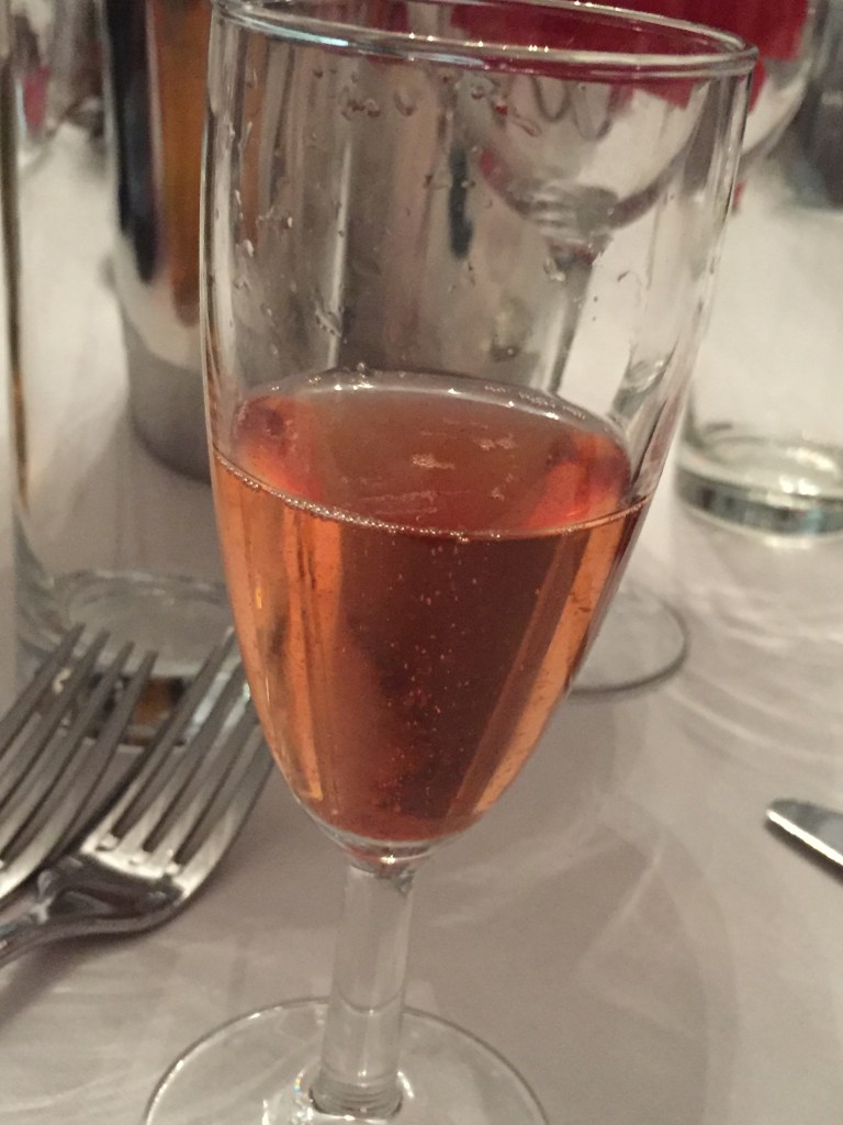 We chatted with friends, and sampled delicious canapés. There were tiny smoked salmon blinis and hoisin duck wraps, chorizo and prawn skewers, miniature tartlets and all sorts of other delicacies, all accompanied by the bubbly. Two of the guests on our table had very thoughtfully brought hip flasks containing damson and sloe gin, which they generously passed round. It really enhances a glass of fizz!