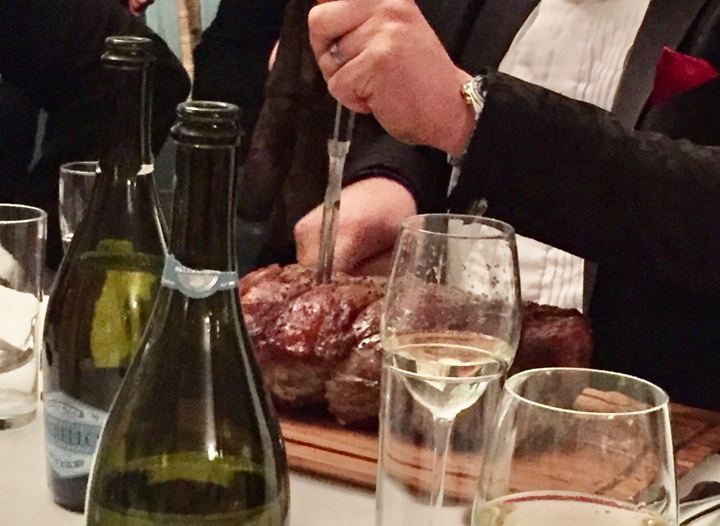 As we took our seats for dinner it seemed that the wind had abated a little. Joints of roast beef were brought to each table, and one of the guests on our table carved ours…it was perfectly cooked and there were plenty of roast potatoes, vegetables, Yorkshire puddings and gravy to go around. We ended our meal with generous portions of sticky toffee pudding, served with copious amounts of custard. All very tasty.