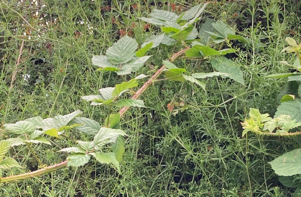 The bramble or blackberry is a member of the rose family and not actually a single species, but an aggregate of some 2000 very similar micro species. It is a scrambling perennial shrub that is commonly found in hedgerows, woodlands and waste ground. It is happy in poor soil and quickly colonises untended or ungrazed land and is difficult to eradicate from a neglected garden. The shoots may grow to 6m long or even more.