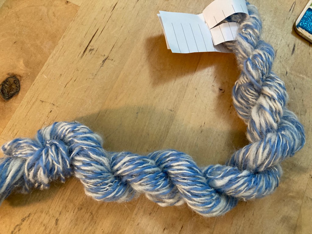 There was some left which I plyed with some blue merino to make this little skein (41 yards /15g.