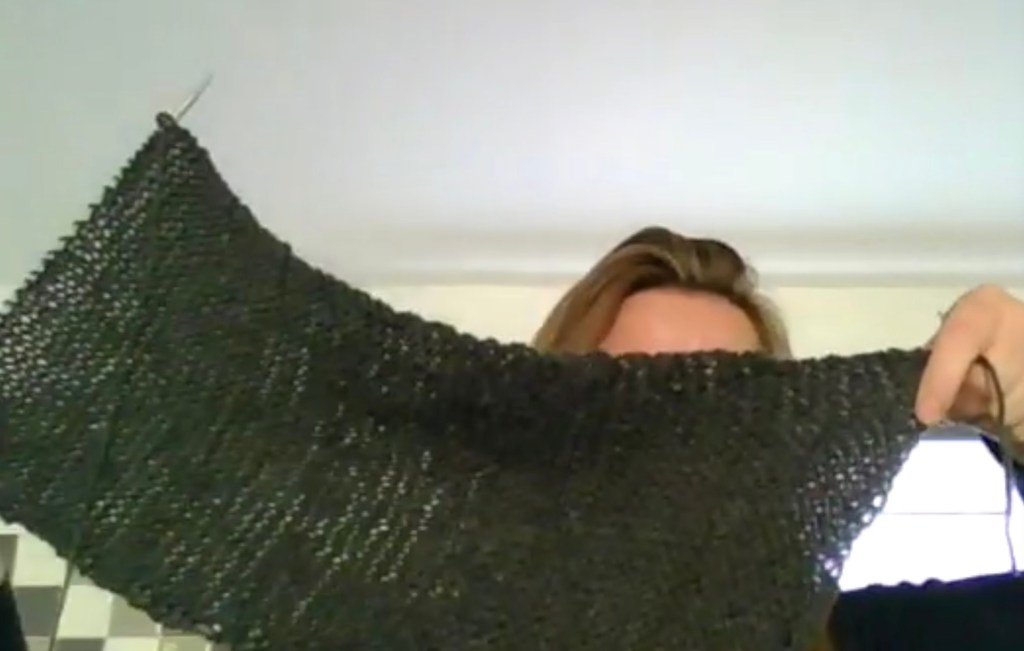 Her original plan was to make it even warmer by adding a fleece fabric lining , but the double layer of knitting is proving to be quite warm enough. She’s had some requests to make more of these and was working on one in a lovely teal colour with the design in black.