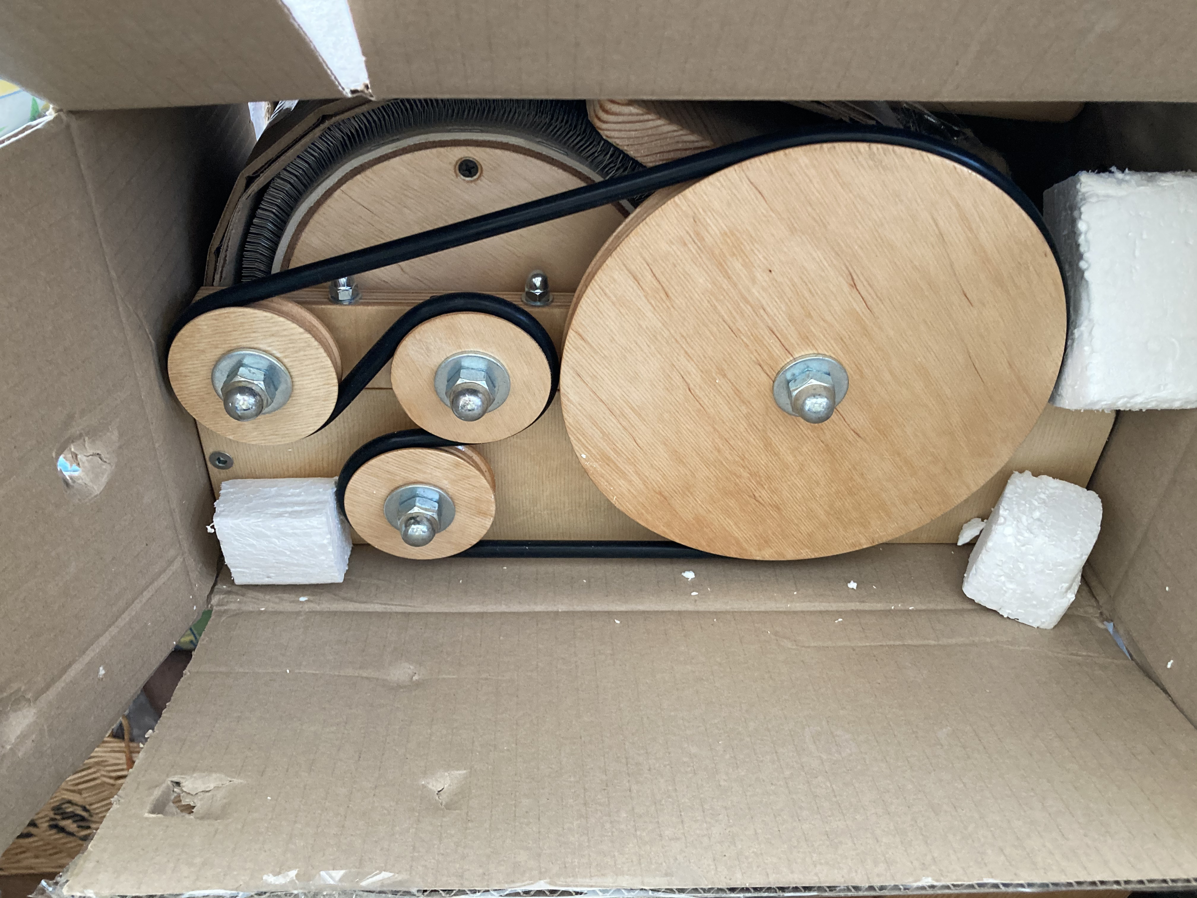 It was certainly well packaged, but after removing plastic, brown paper and two cardboard cartons the drum carder was finally revealed.
