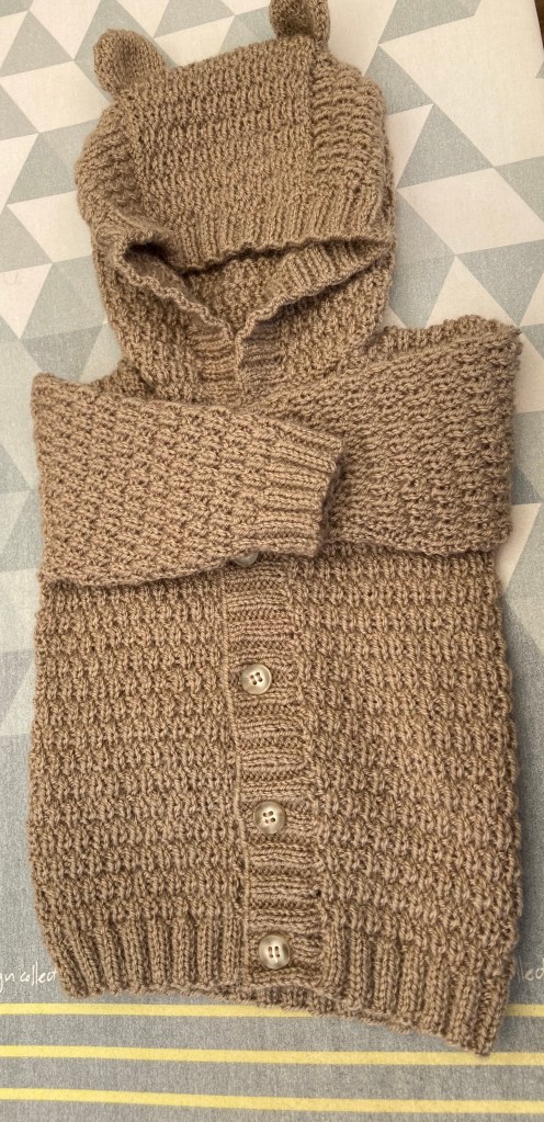 Do you have a go to pattern when knitting for a new baby? This is one of mine. I’ve done it at least five times now. I even made it twice for my great nephew. He grew out of the first one and his mum asked if I could make it again in a larger size as they all liked it so much! I’ve just knitted it again for a friend’s new baby boy and I’m looking forward to meeting him when I deliver it in person tomorrow.