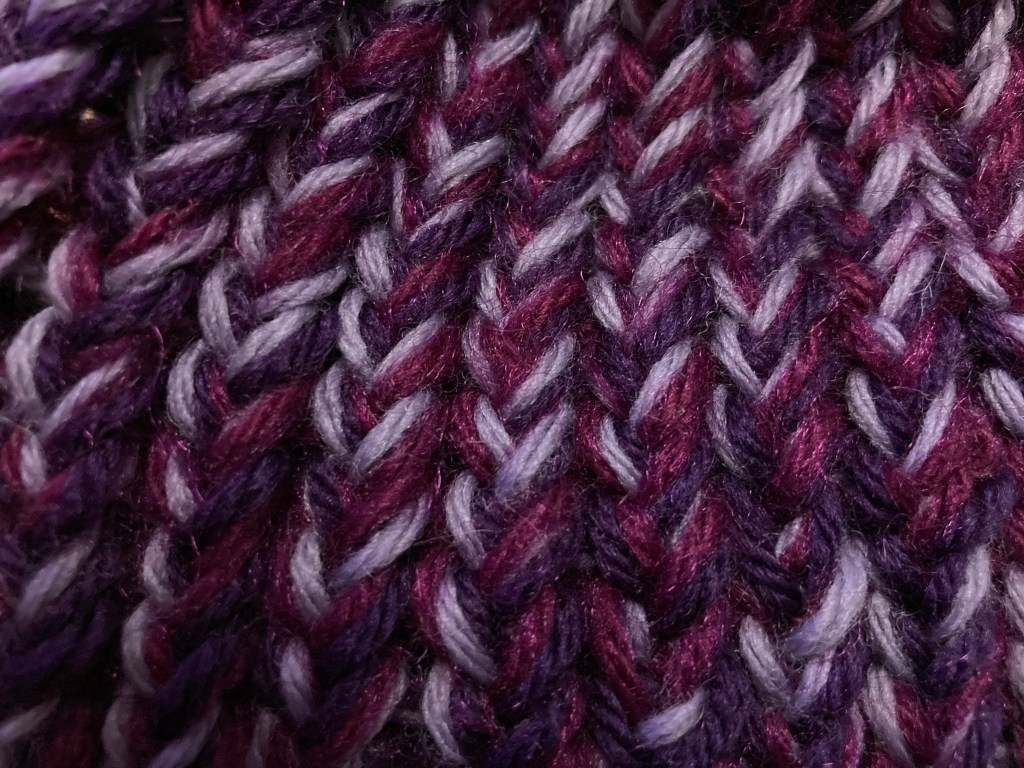 I used three strands of DK yarn, each in a different colour (purple, magenta and lilac).
