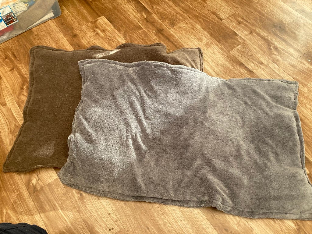 The first job I tackled in the newly revamped space were doggy duvet covers! I made some cosy doggy bedding a while ago from an old duvet, but the white cotton covering shows every muddy paw mark. I had a couple of old throws made from a nice soft fleece fabric, which were surplus to requirements so I’ve used these to cover some of the doggy duvets. I just cut them to size, pinned them in place over the duvets and machine stitched all the way round, about 2 cm from the edge and then again as close to the edge as possible.