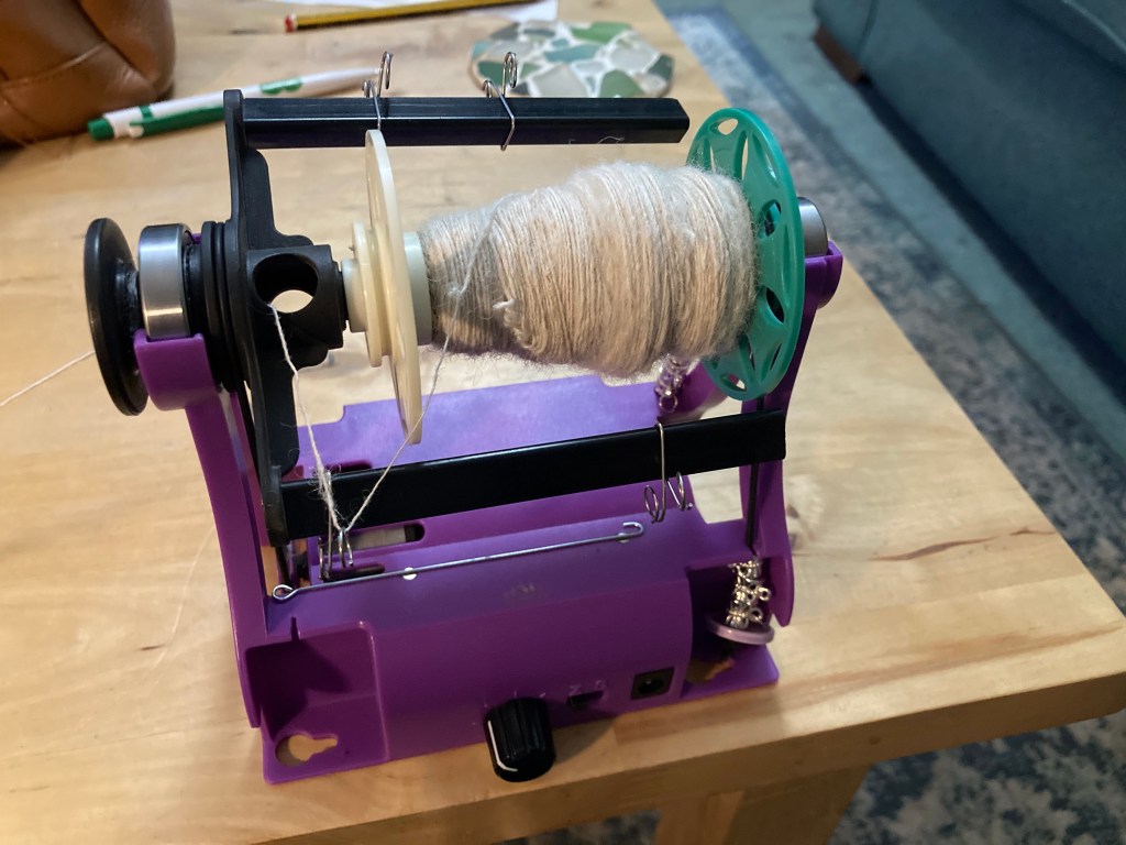 I’m still spinning alpaca fleece. I’m working towards a sweater for myself.