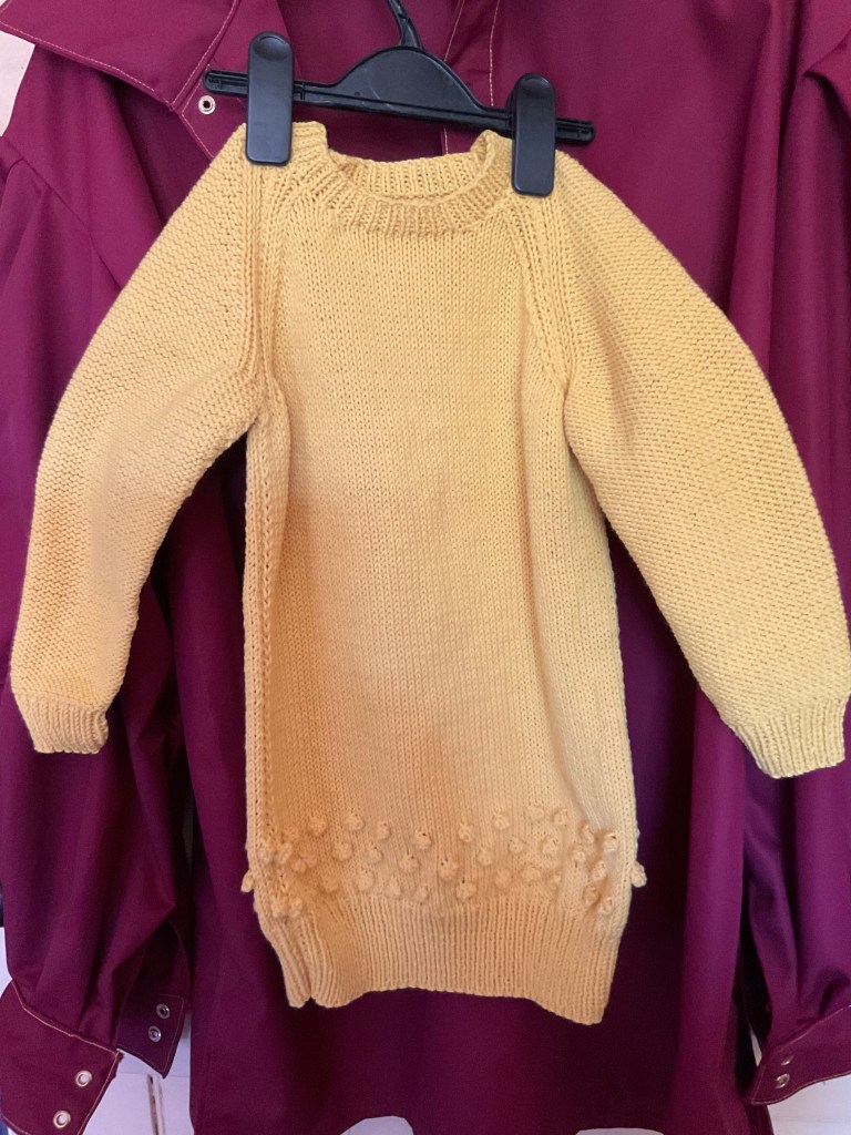 The smaller trees were hung with brightly coloured twists and the trunks wrapped with striped crochet “scarves”.
