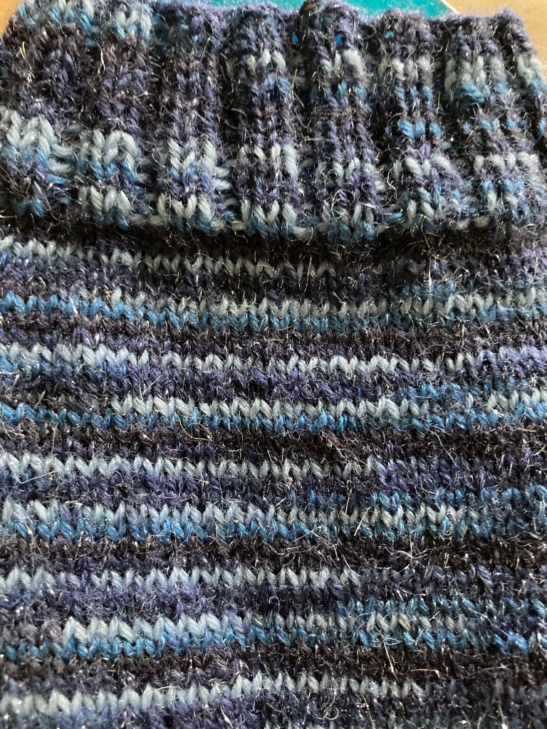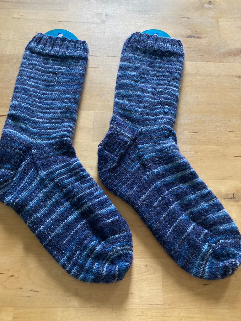 Socks are one of those little projects that you can slip in a handbag to do when you are out and about and this has been useful for that, but I had ignored it for several months so I thought I really should finish it. It’s a top-down pattern that a friend gave me.