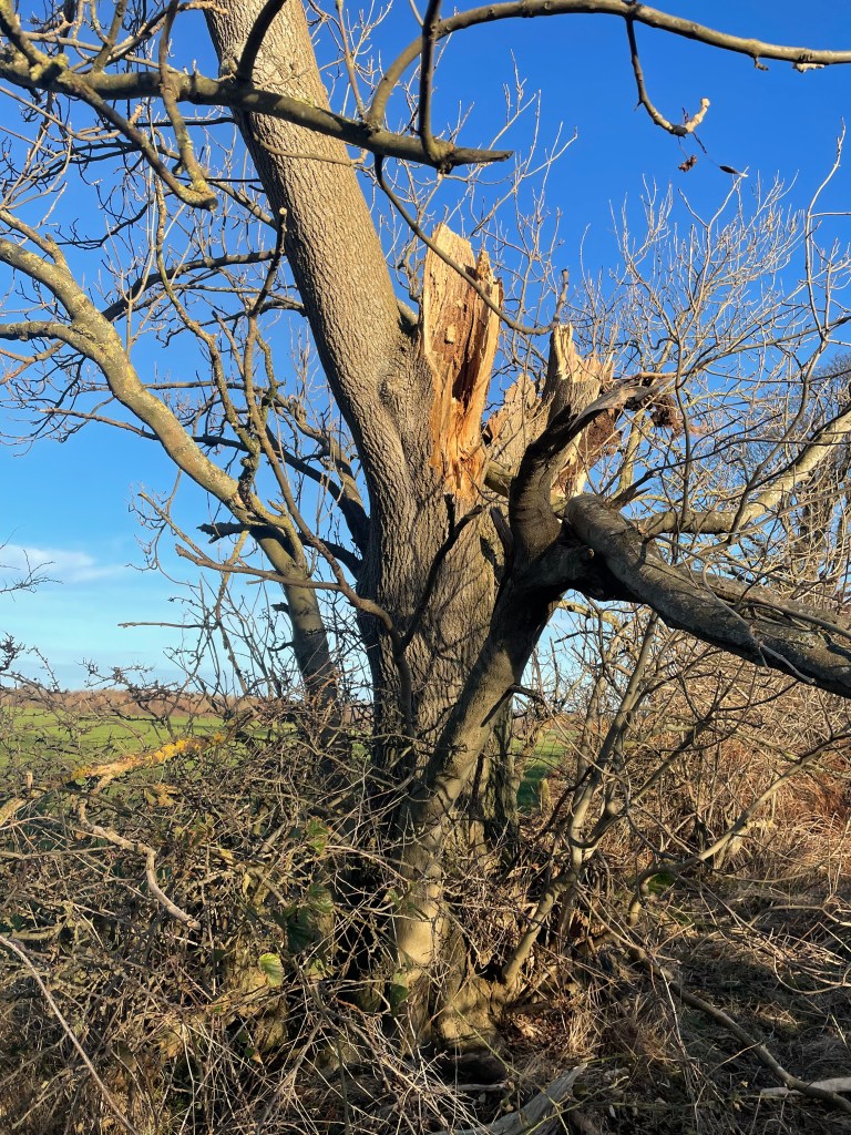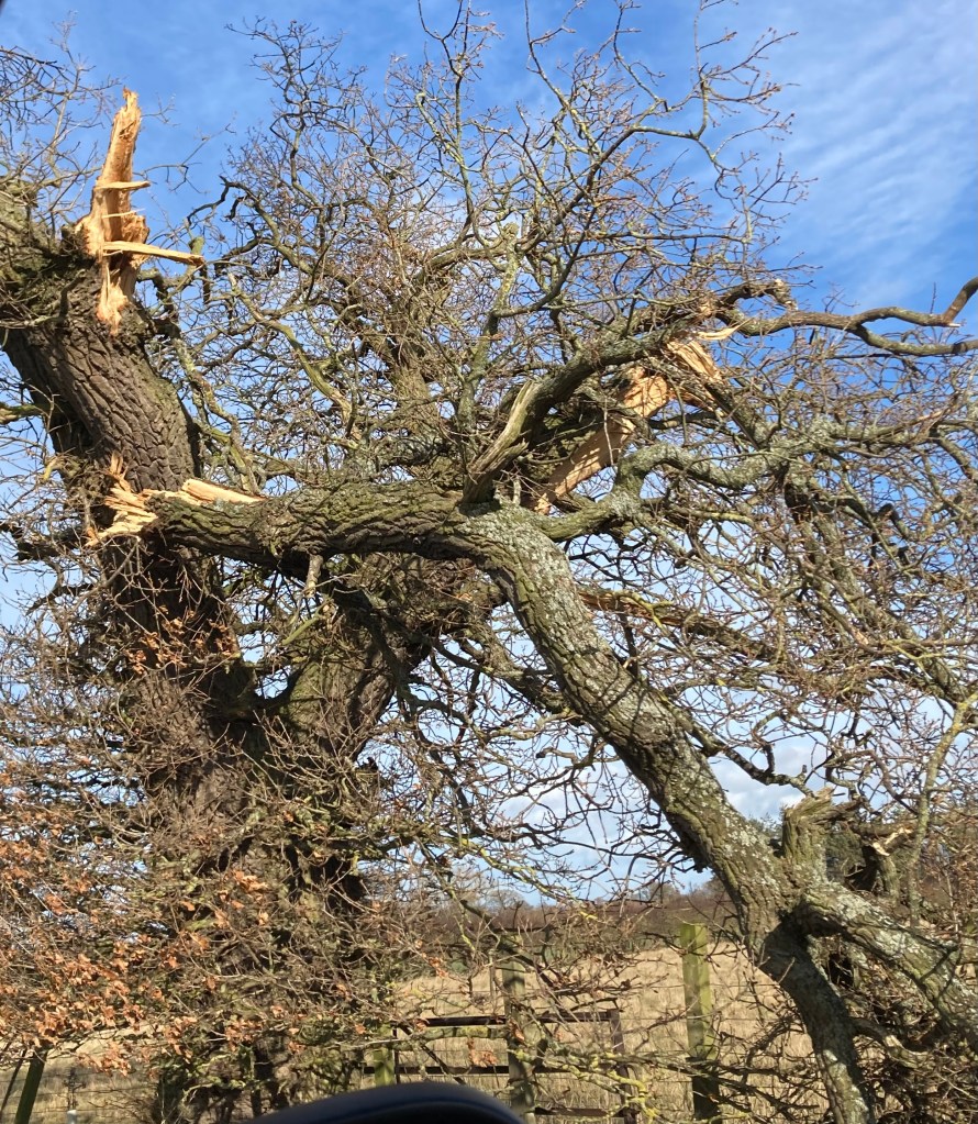 Great gaps had appeared in hedgerows where trees had come down damaging the surrounding hedges. Huge boughs had been ripped off some of the trees.
