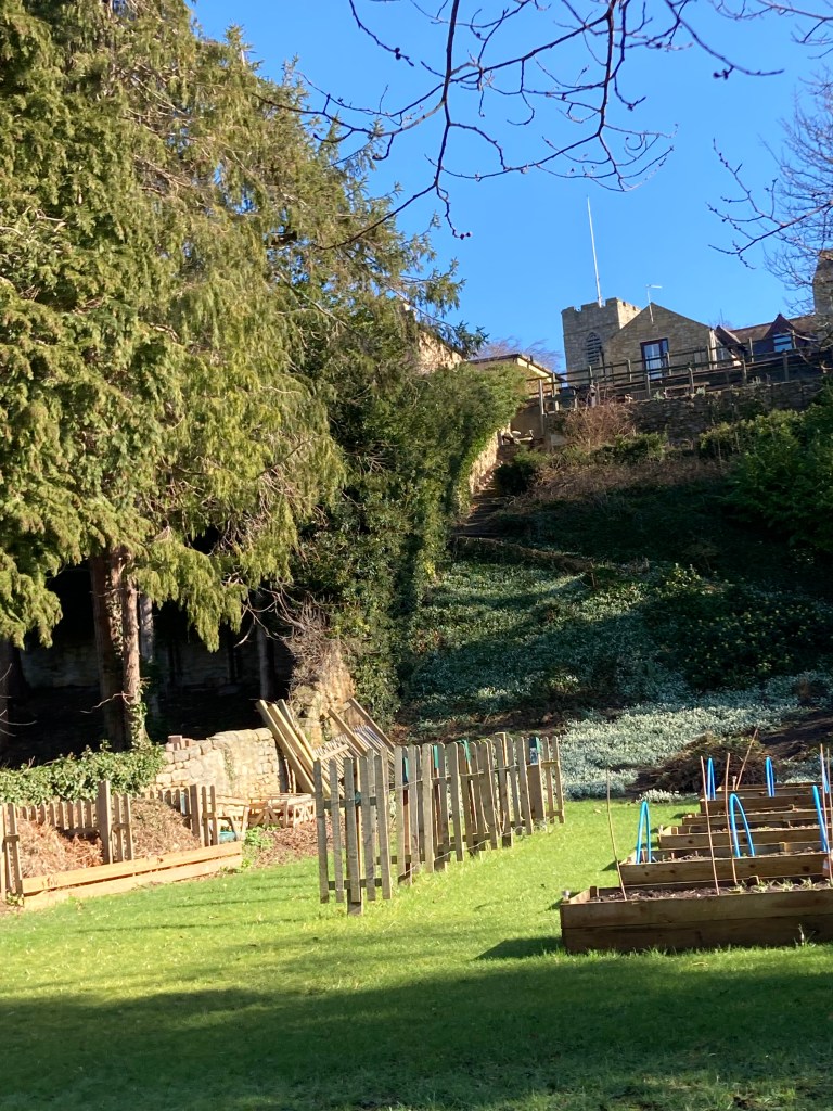 I went there often as a small child. At the time, the garden belonged to the Tynedale pub. There are other businesses occupying the former pub premises now but the central archway and courtyard remain, from which steep steps descend to the flat area at the bottom of the garden. I was so pleased to see that this is still being used to grow vegetables as Grandpa was a fanatical gardener. Having cultivated his garden at home to grow copious amounts of produce, he ran out of space but managed to plant a few rows of cabbages and beans by the caravan.