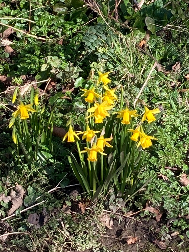 A steep lane leads down to a footpath by the river. It was a little muddy and criss-crossed by tree roots but the scooter coped. There were masses of snowdrops and some early daffodils in flower.