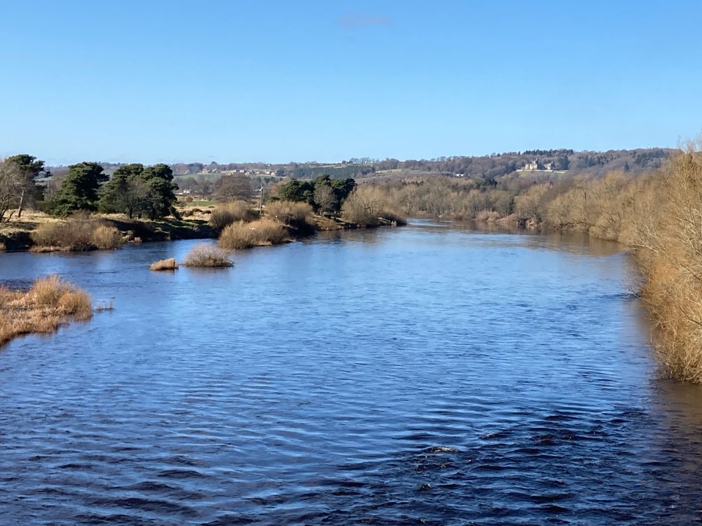 Corbridge is a pretty village, with an old church, and some attractive shops, cafes and pubs. It sits perched on a steep bank overlooking the Tyne, only a fairly short drive from the City of Newcastle, making it a popular destination for visitors. To reduce congestion on the narrow streets, there is a large car park just over the bridge outside the village. Stopping there and walking (or in my case scooting) back over the bridge presents stunning views of the river.