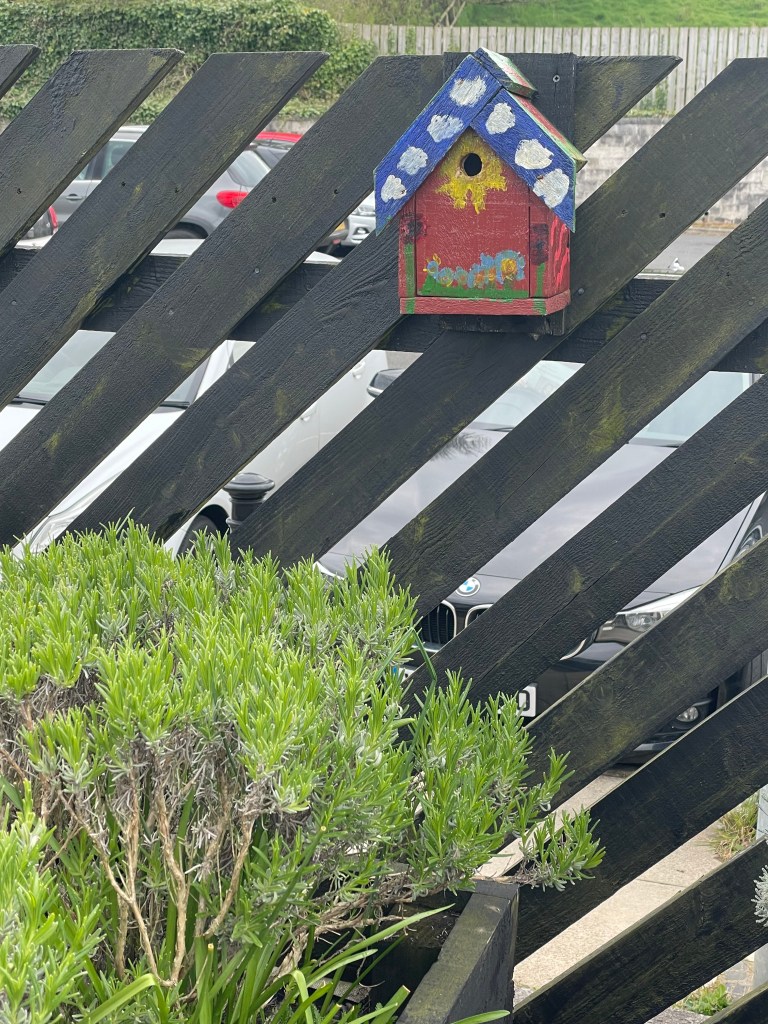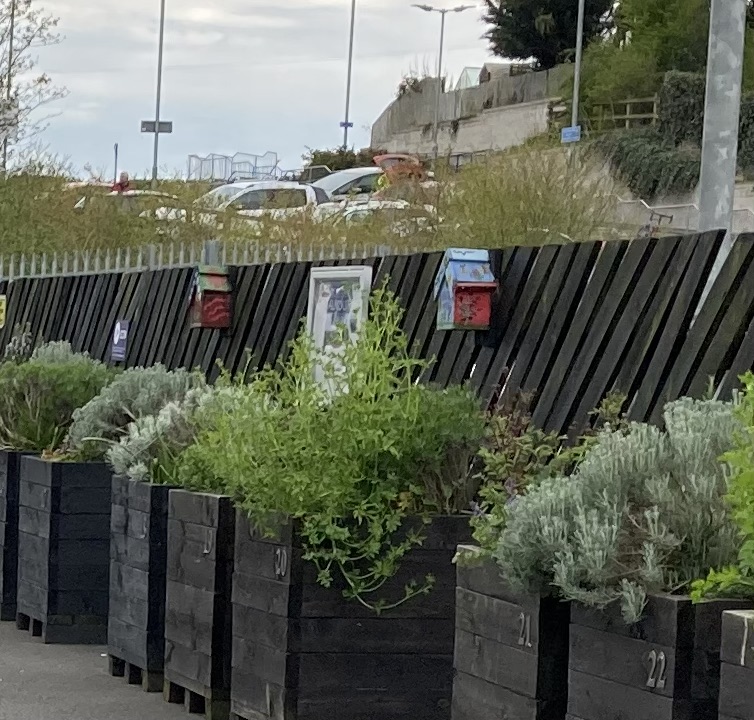 The road leads down the hill to the harbour car park but the sculpture is at the top, again overlooking the harbour.