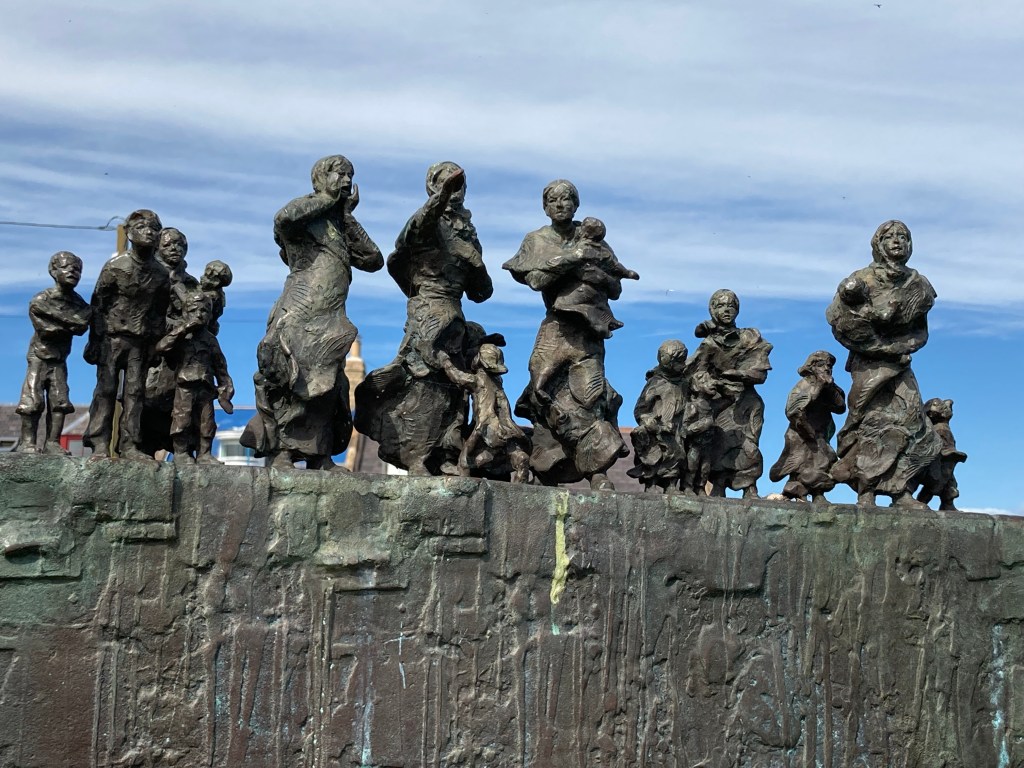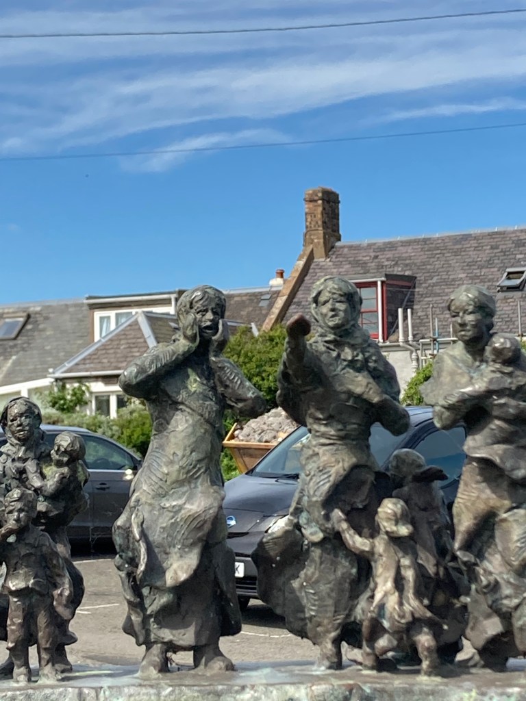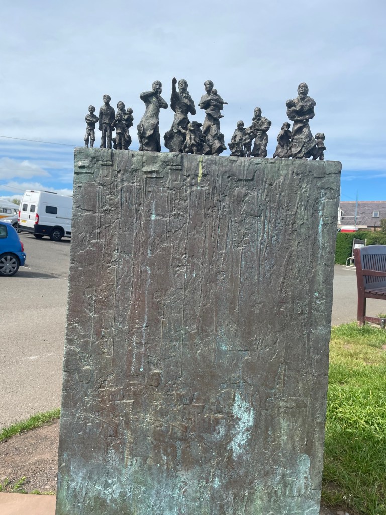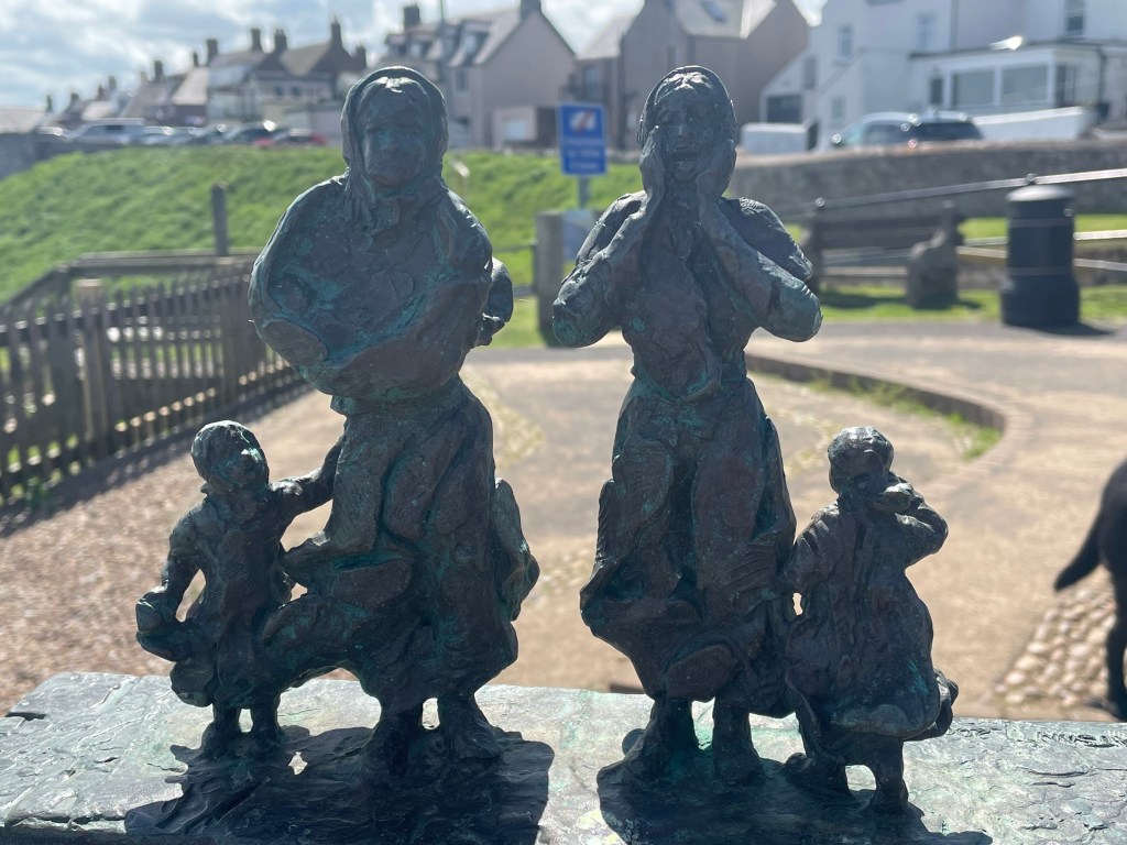 The bronze cast sculpture overlooks the sea as the wives and children of the fishermen did. The adult figures stand about 20cm high. Each one represents a real person , the families of the 11 men of Cove who were lost that night.
