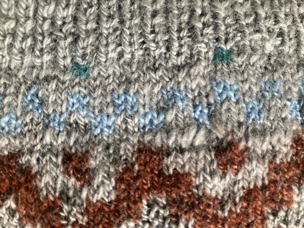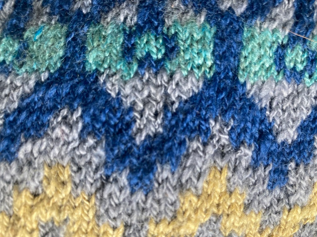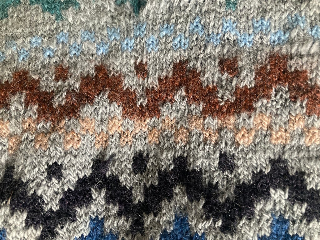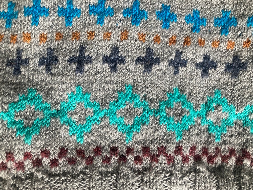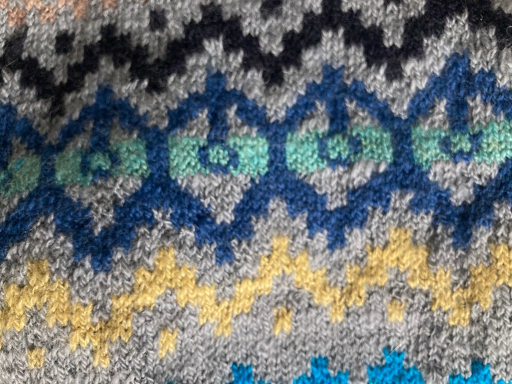 It was fun to knit – the design kept me engaged, not just following the pattern chart but also ensuring the strands of yarn floated at the back weren’t pulled too tight.