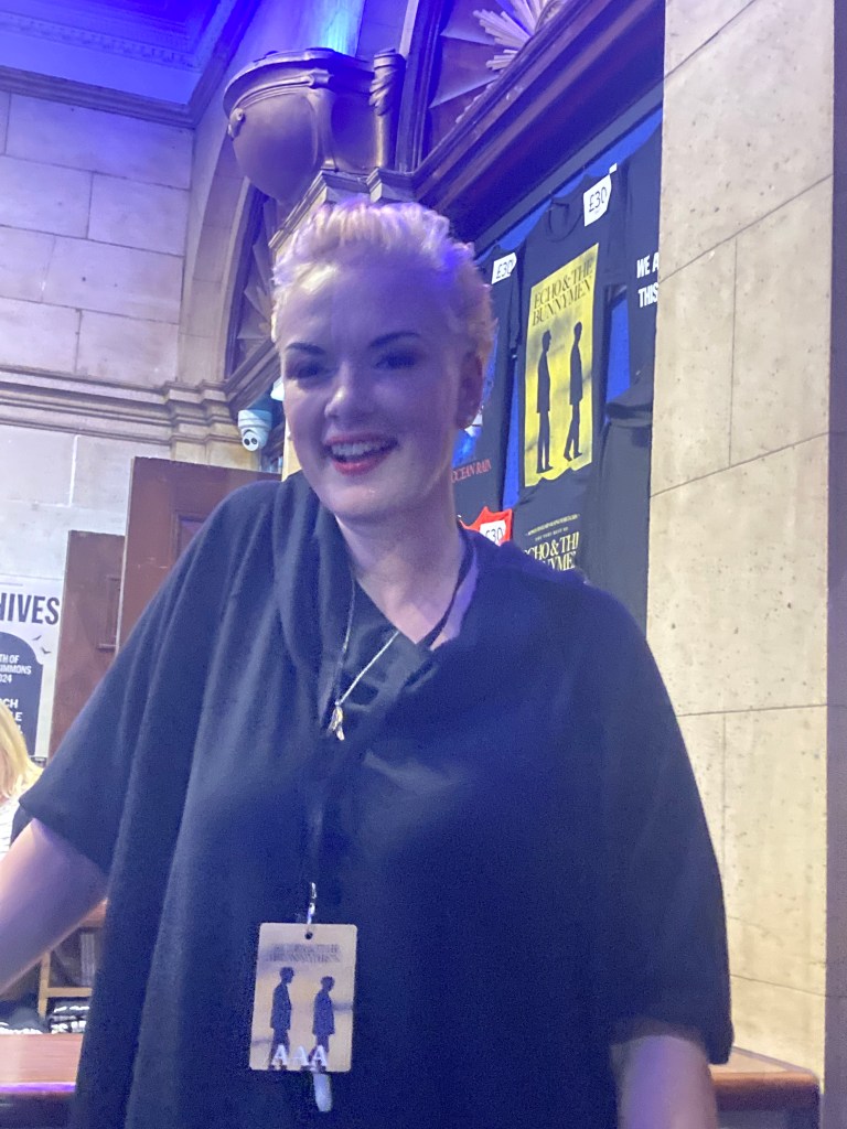 In the interval I went to find the accessible toilet, which is situated in the foyer, Radar Key operated. One of the lovely stewards on the platform helped me as I appeared to have left my own Radar Key in another handbag! It’s not a bad facility, spacious enough, though could do with a mirror. As I was reversing my scooter out, someone held the door open for me – I looked up and it turned out it was Erica, the support act, who was standing there next to the merch stall – so we had a brief chat – she was lovely!