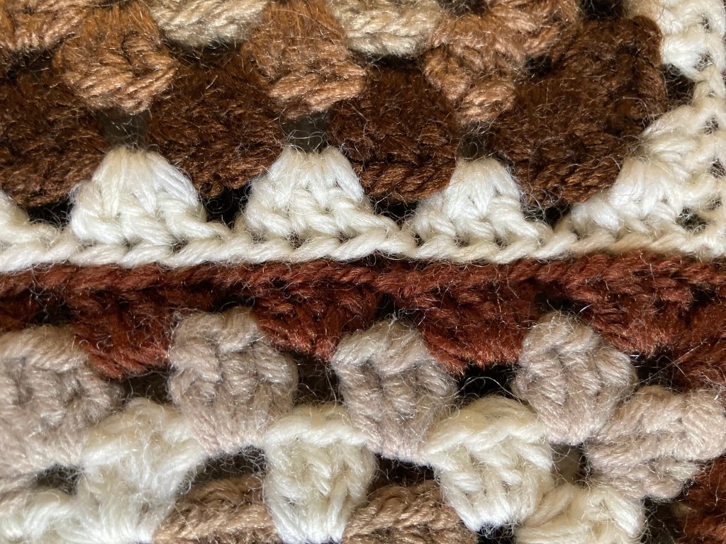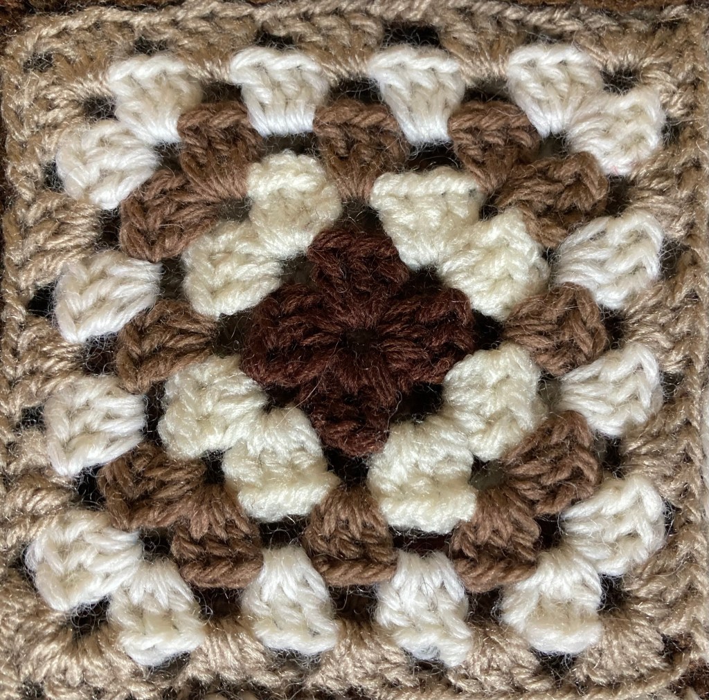 We were making the classic granny square, so called (I think) because our grandmothers and those before them were the queens of recycling and ‘make-do and mend”. Nothing was wasted out of a need to be frugal. These crocheted squares were the perfect way to use up scraps of yarn left over from other projects or unravelled old and unwearable jumpers. The squares could then be joined up to make colourful blankets and other useful items. Granny square garments are now gaining popularity as much for their looks as their sustainability.