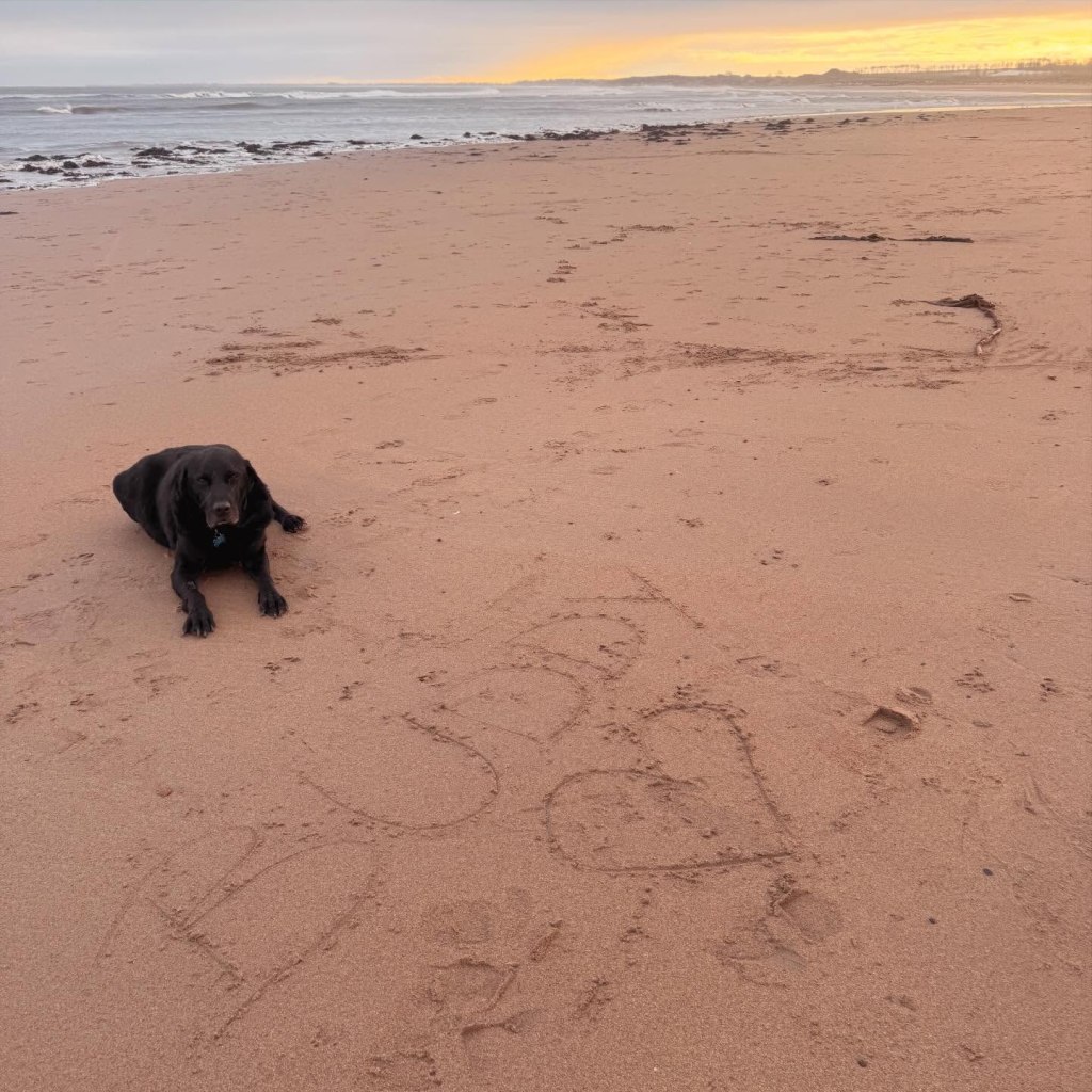 When Kevin retired the following year, scoots round the village were replaced by long beach walks . They both loved these. In the summer, busier beaches would be avoided as Buddy, ever the scavenger, would love to raid a picnic. You’d have to watch him anywhere though as he’d also try to each anything dead that washed up (the deader the better!)