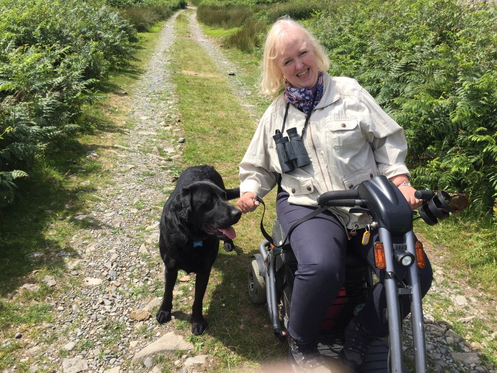 He soon got the hang of trotting alongside my disability scooter and we’d have lovely walks around where I live. Buddy seemed to know instinctively that I’m not so steady on my feet – if he was excited he could get very bouncy but he never jumped up at me.Later that year I was very ill and hospitalised for several weeks – Buddy visited me! I was in a ground floor room and my bed was wheeled close to the open window where I could reach out and pat Buddy.